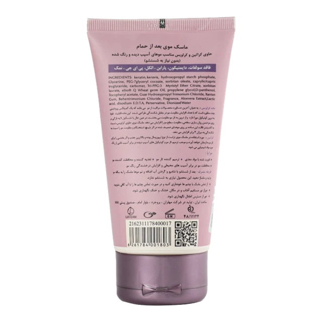 ترميم موهاي رنگ و دكلره شده، آسيبديده، خشك و وزشده نرم كننده، مغذي و آبرسان تار مو تقويت تار مو و افزايش ضخامت مو ضدموخوره، ضد گره و كرك شدن ايجاد لايه محافظ بر روي مو و درخشانكننده مو فاقد سولفات و ايدهآل براي موهاي كراتينه، بوتاكس يا پروتئينه شده