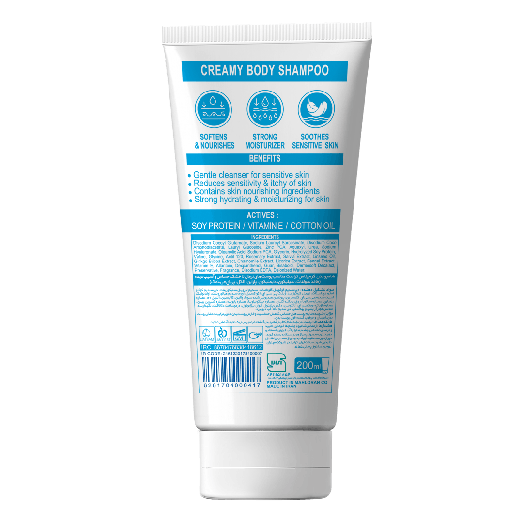 شوينده ملايم حاوي ١٠٪ كرم مغذي، نرمكننده، آبرسان و مرطوبكننده قوی ضدخارش، ضدالتهاب و التيامبخش مناسب پوستهاي خشك و حساس فاقد سولفات، سیلیکون، دایمتیکون، پارابن، الکل، پی ای جی و نمک